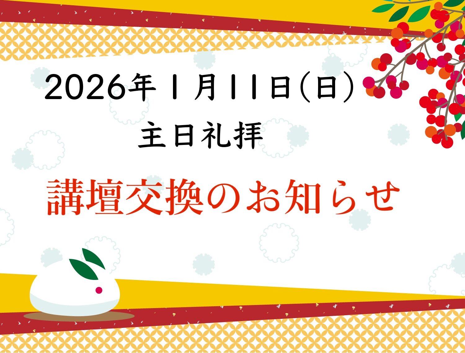 | 定期集会 | 毎週日曜 13:30~15:00 | 礼拝後に開催します。 詳しくは、下記の【行事の紹介を見る】をご覧ください。 |